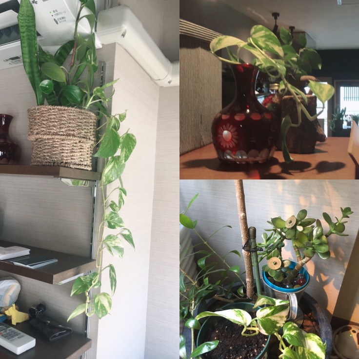オープン祝いに頂いたポトスが伸びすぎ。居心地いいんでしょうね🌿