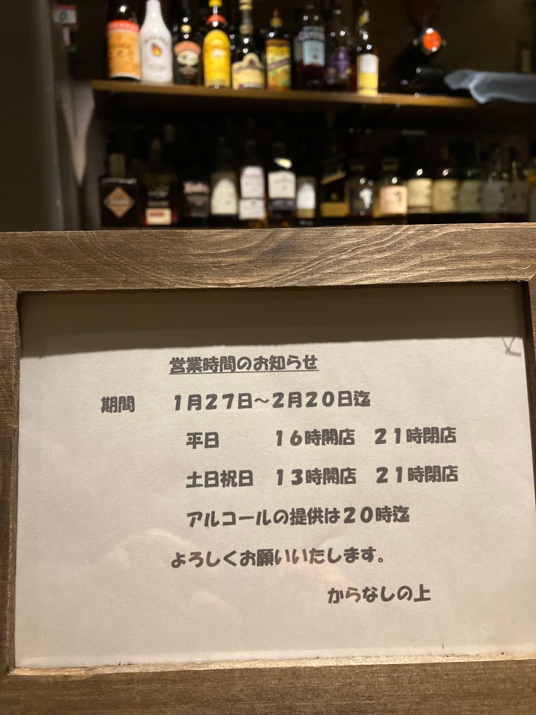 1月27日〜2月20日まで21時閉店になります。