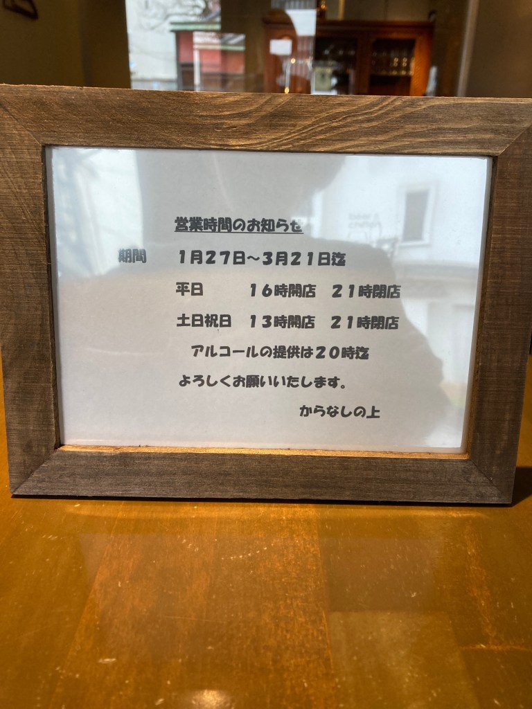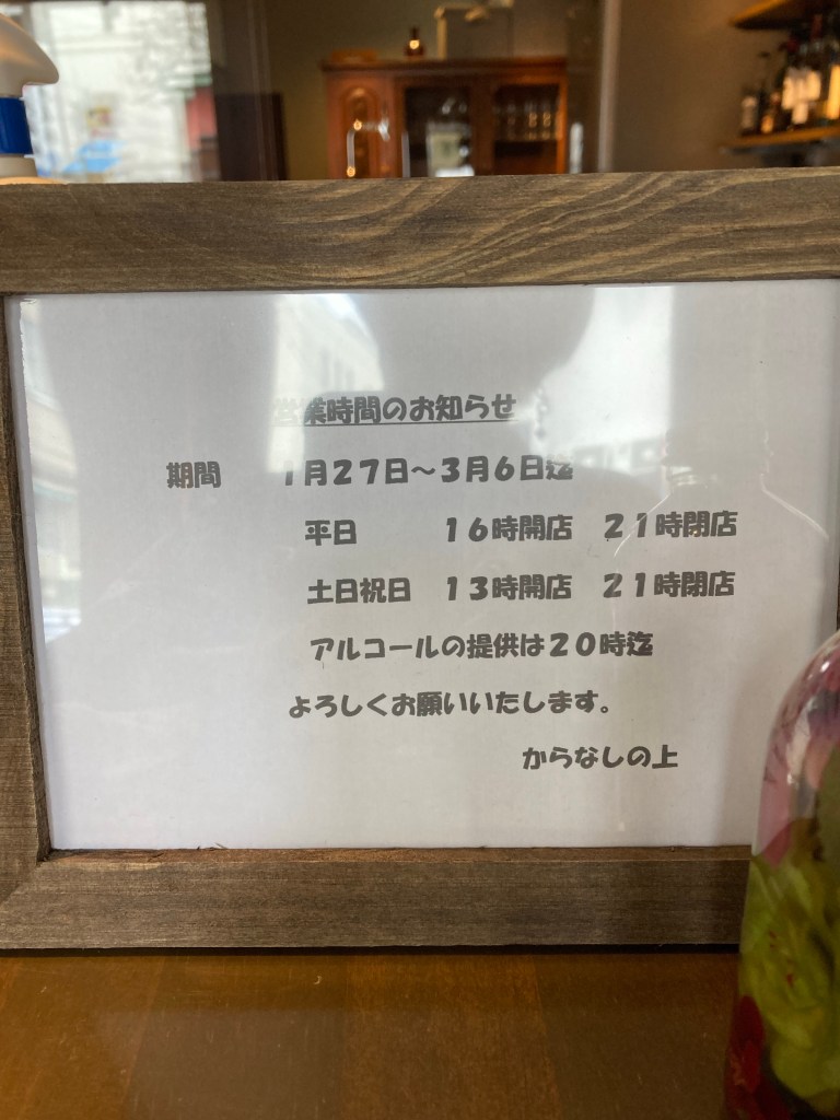 アルコールのラストオーダーは20時とさせていただきます。